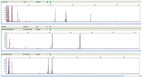2、STR鑒定:STR(短串聯(lián)重復序列)基因分型是進行細胞交叉污染和性質(zhì)鑒定的方法之一,STR基因位點由長度為3~7個堿基對的短串連重復序列組成, 這些重復序列廣泛存在于人類基因組中,可作為高度多態(tài)性標記,被稱為細胞的DNA指紋。STR 基因座位上的等位基因可通過擴增區(qū)域內(nèi)重復序列的拷貝數(shù)的不同來區(qū)分,在毛細管電泳分離之后可通過熒光檢測來識別。隨后通過一定的計算方法,即可根據(jù)所得的STR分型結果與細胞STR數(shù)據(jù)庫比對從而推算出樣品所屬的細胞系或可能的交叉污染的細胞系名稱。